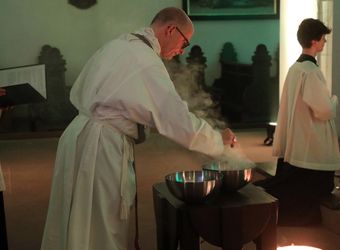 Vor dem eucharistischen Brot in der auf dem Altar aufgestellten Monstranz flackert ein stetig wachsendes Kerzenmeer. Meditative Orgelmusik, Impulse zu Themen wie „Nacht“ und „Hoffnung“ sowie stille Zeiten wechseln sich ab. Wer mag, kann in der Kilianskrypta noch tiefer in die Stille eintauchen oder an verschiedenen Orten im Neumünster mit einem Seelsorger oder einer Seelsorgerin sprechen. Eine kleine Gruppe trifft sich mit Bischof Dr. Franz Jung zum Glaubensgespräch in der Chorkrypta. Die Frohe Botschaft im Advent sei, dass die Seele schon immer erhoben sei zu Gott, sagt der Bischof. „Jetzt im Advent kommt er uns entgegen und macht uns Mut.“ Wenn man unter Ängsten leide oder depressiv sei, sei es gut, jemandem zum Reden zu haben. „Deshalb gibt es im Advent auch die Einladung zum Beichten, um aus dem Kreisen um sich selbst herauszukommen und wieder Kraft zu schöpfen.“ Zum Abschluss der Nacht sind alle eingeladen, ein Weihrauchkorn in eine Schale mit glühender Kohle zu legen.