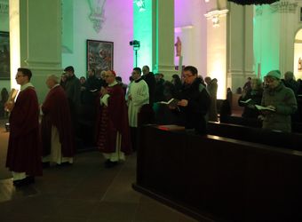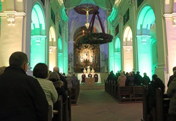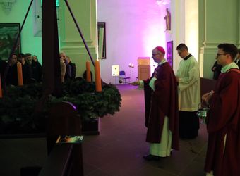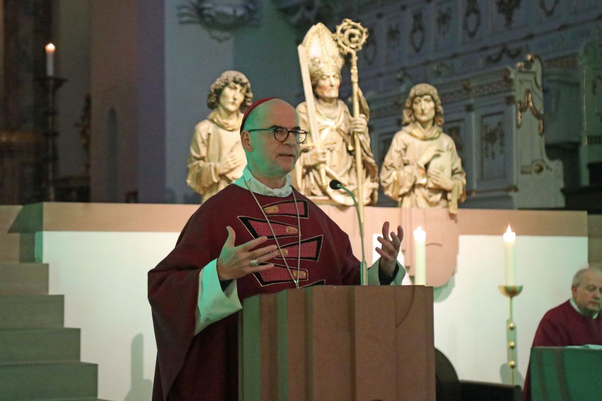 Zum Beginn der „Nacht der Hoffnung“ feierte der Bischof einen Pontifikalgottesdienst. „Seit Jahren haben wir den Eindruck, nur noch von Krise zu Krise zu taumeln“, sagte er. Die Worte aus dem Evangelium – „Die Menschen werden vor Angst vergehen in der Erwartung der Dinge, die über den Erdkreis kommen; denn die Kräfte des Himmels werden erschüttert werden“ – klängen zeitlos angesichts der Kriege im Nahen Osten und in der Ukraine, der zunehmenden Polarisierung und Radikalisierung, der angekündigten Entlassungswellen und der vielen Krisen, von der Migrationskrise bis zur Energie- und Klimakrise. Doch das Evangelium sage überraschenderweise genau das Gegenteil: Die Erschütterung sei Vorbote des Kommens des Messias. „Alles, was passiert, will seinem Reich den Weg bereiten in unsere Welt. Advent heißt, zu glauben, dass mitten in den Krisen uns Gott näher ist, als wir vermuten, und dass gerade dann, wenn alles ins Wanken zu geraten scheint, er der Halt unseres Lebens sein will.“
